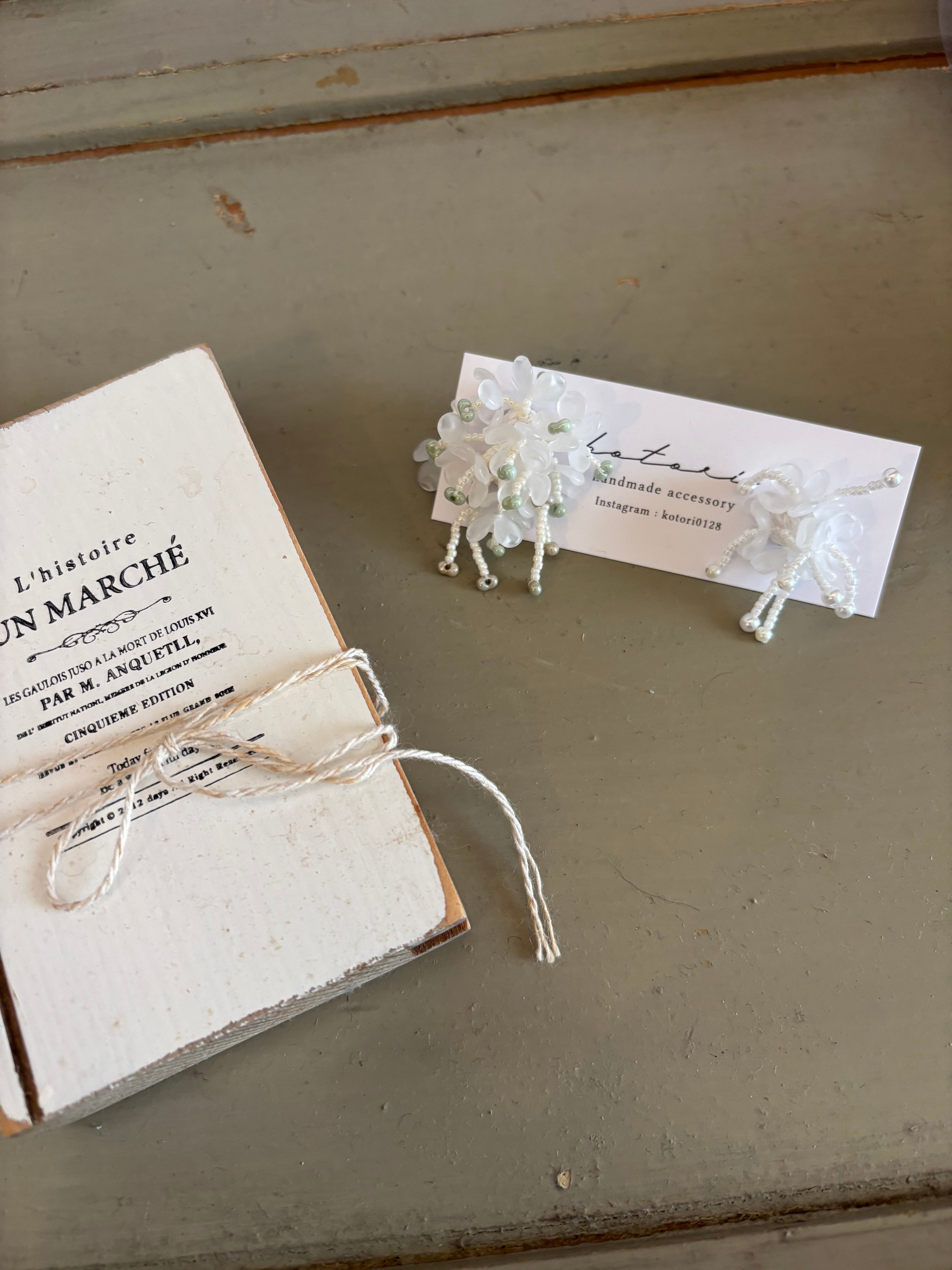 フロストカボションとビーズがあしらわれた素敵なピアス。
