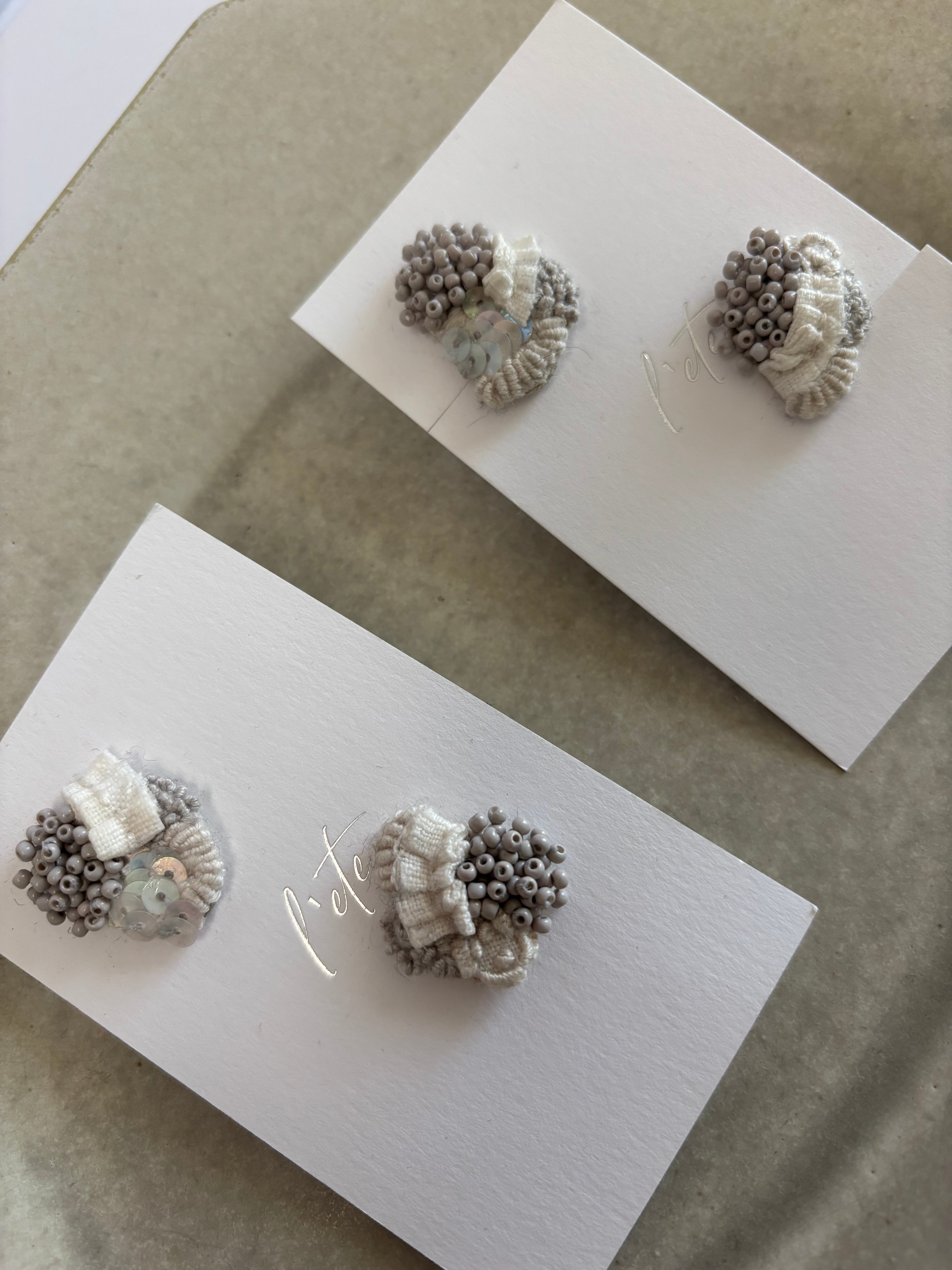 ビーズや刺繍がアシンメトリーに施されているアクセサリー。角度によって表情が変わりとても素敵です。