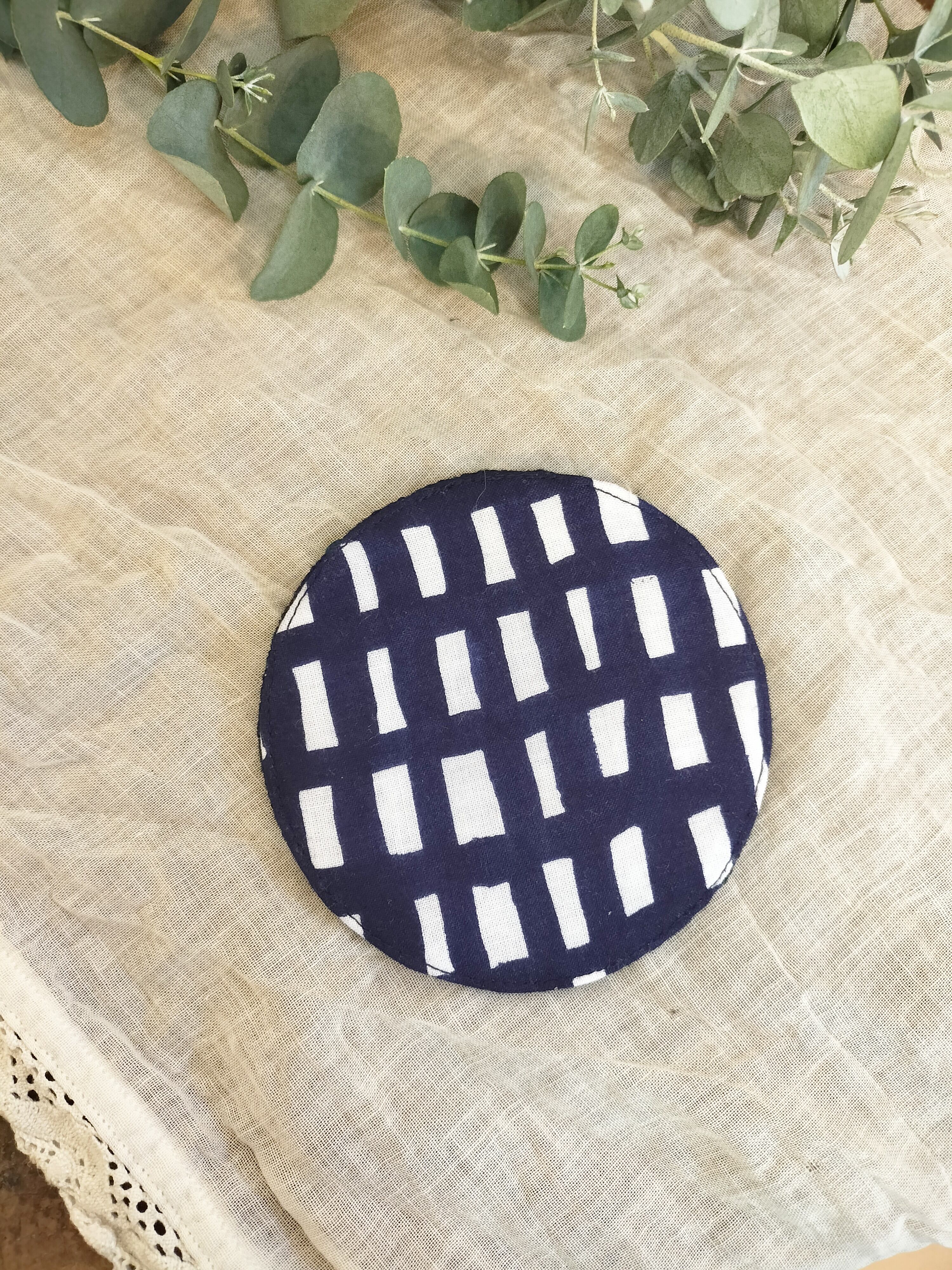 itoiro doriさんのミナペルホネンのファブリックを使ったまんまるコースター。表裏柄が違うので