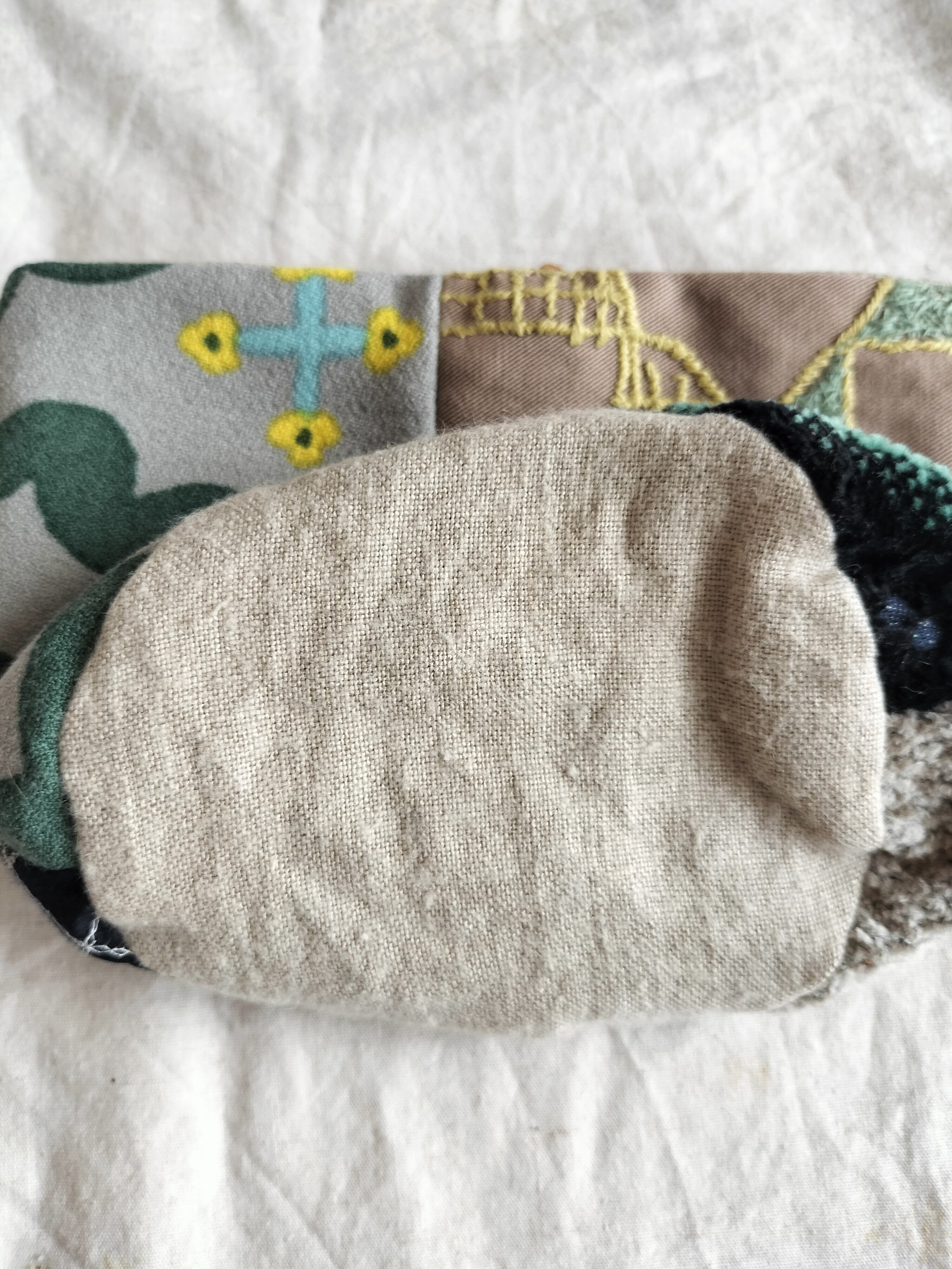 ミナペルホネンのファブリックを用いて、作られたポーチ。