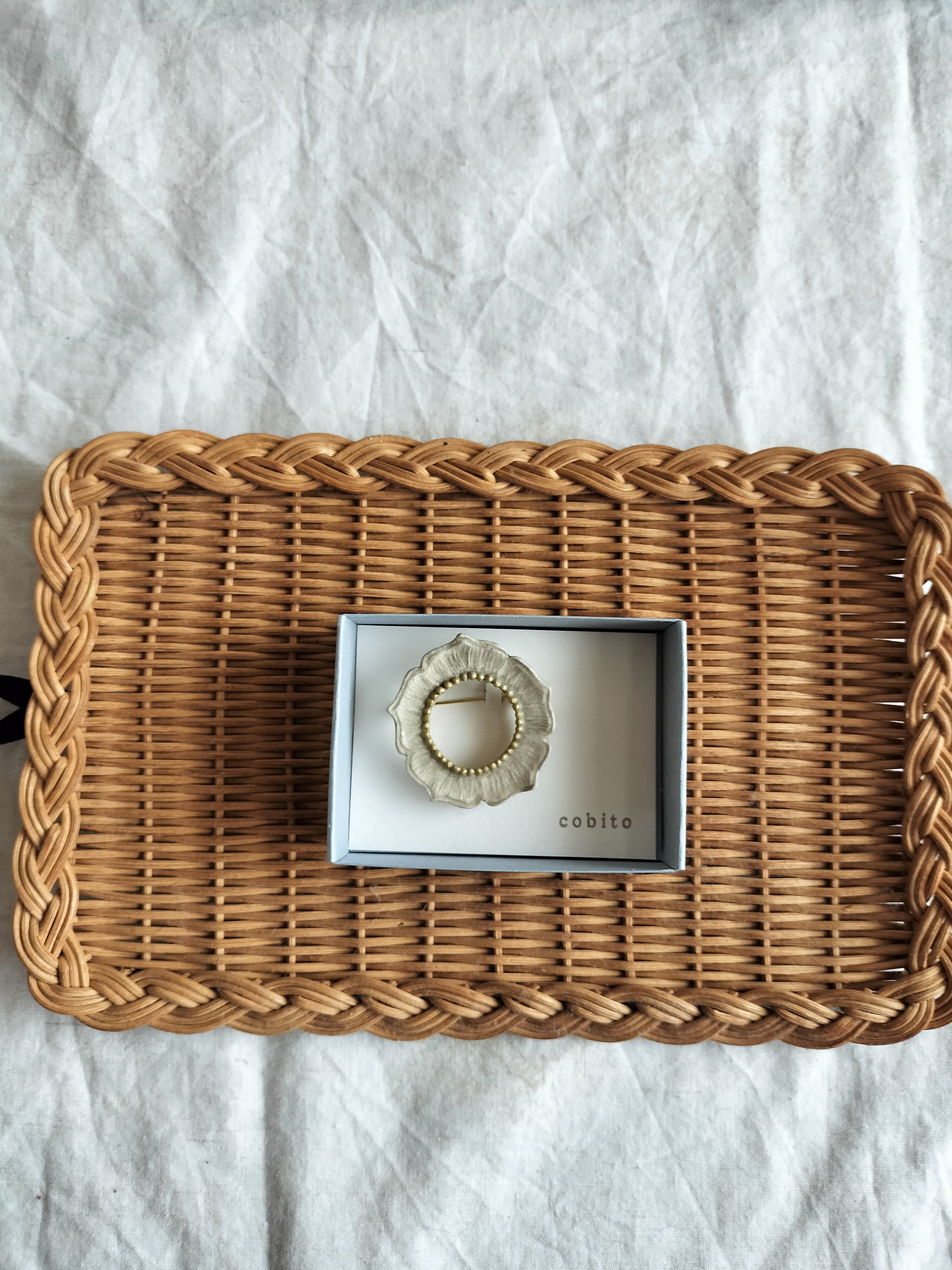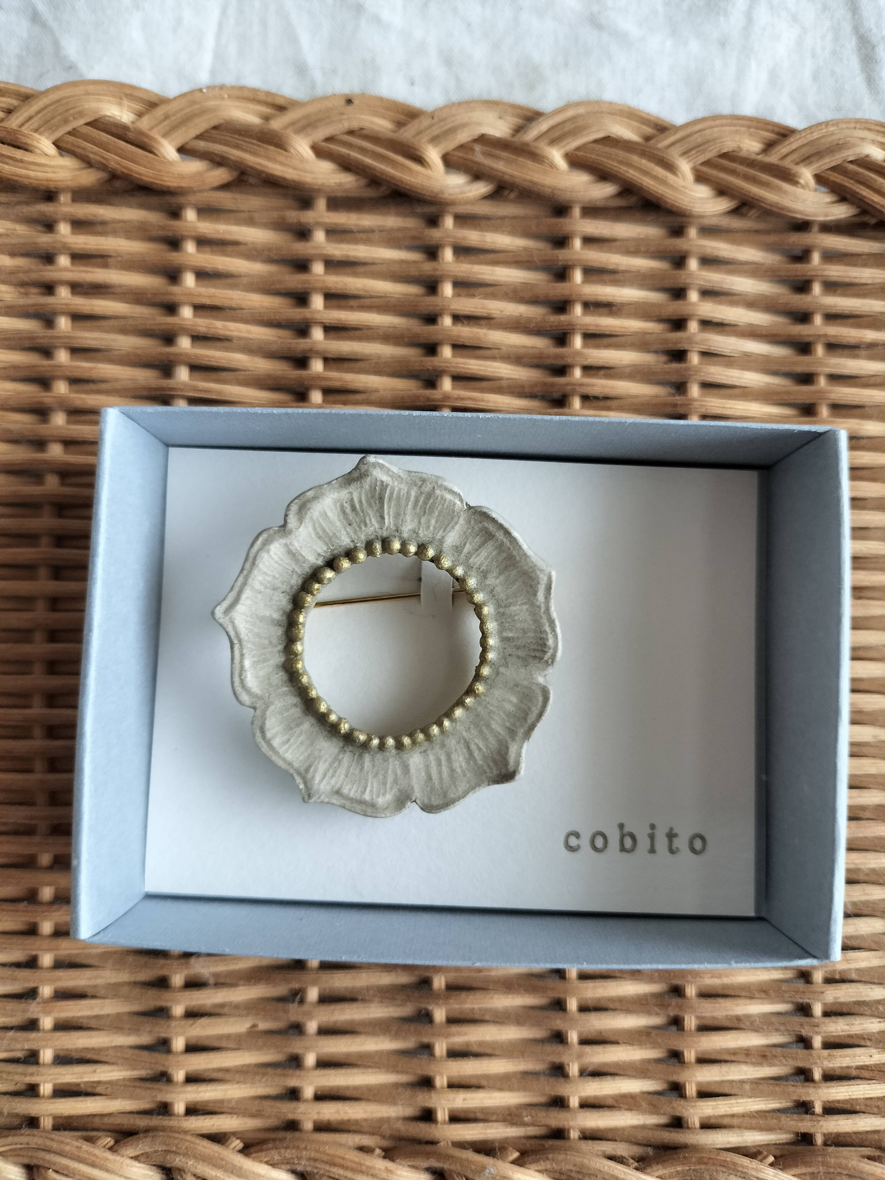 ちょっぴりエレガントなお花のブローチ。中央はゴールドで型どってあります。とても素敵ですよ。