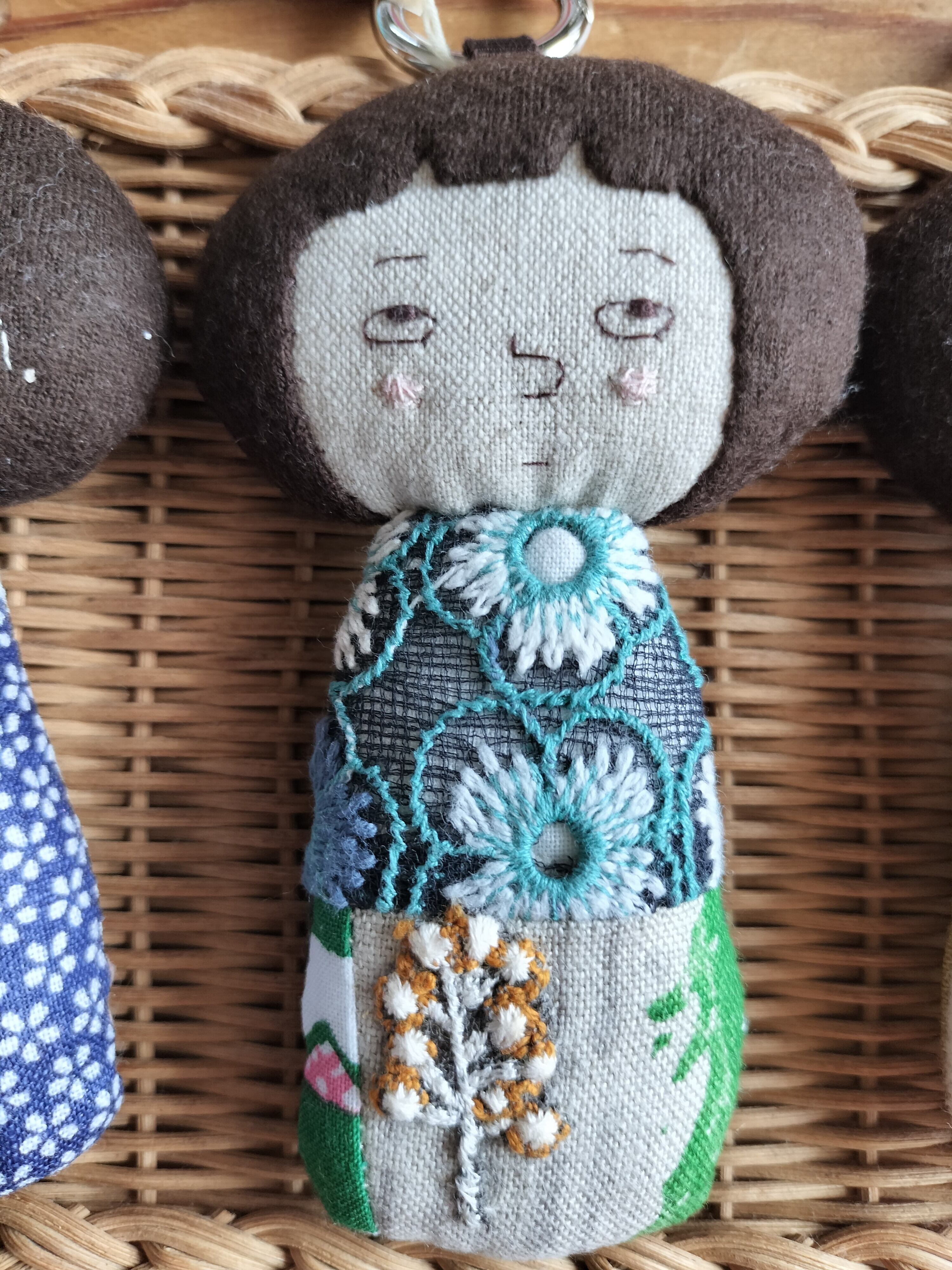 なおちゃんずさんのミナペルホネンのファブリックを用いた姉妹キーホルダー。