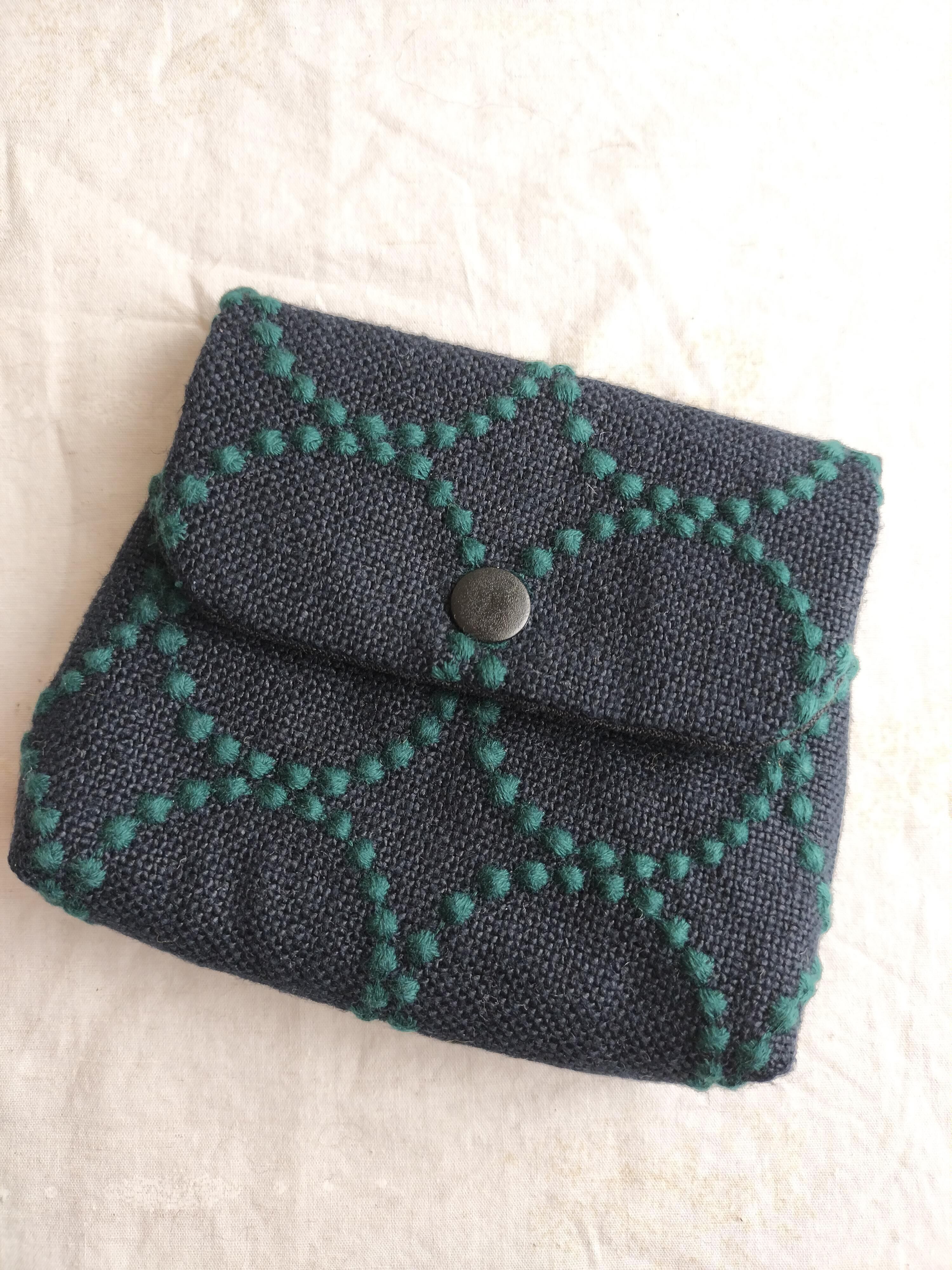 itoiro_dori 手のひらサイズのポーチ tambourine ネイビー×グリーン