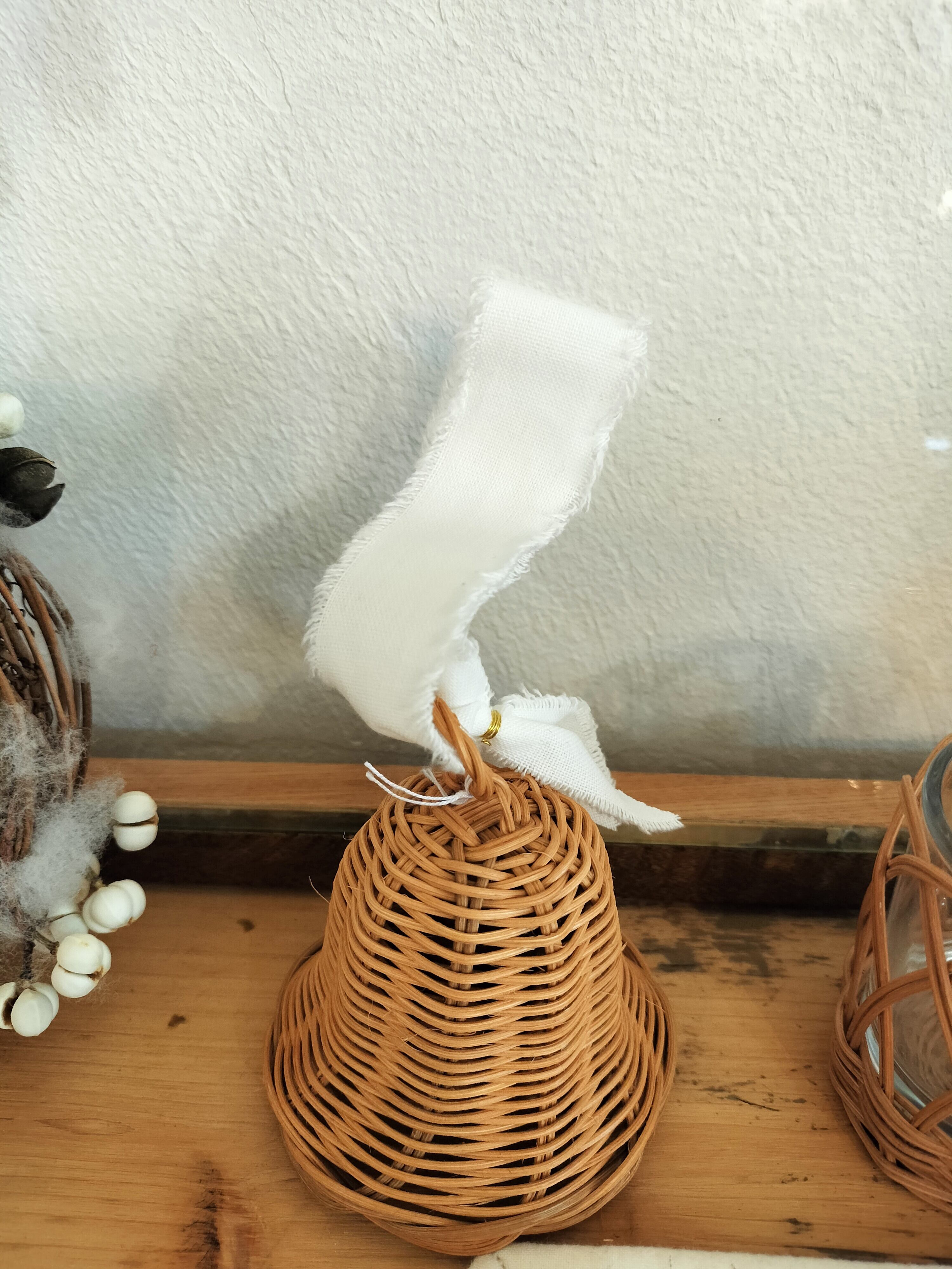 籐で編まれたベル。なんだかそこにあるだけでほっこりするような優しい雰囲気のベル。(音はなりません)クリスマスのときにはツリーに飾っても。