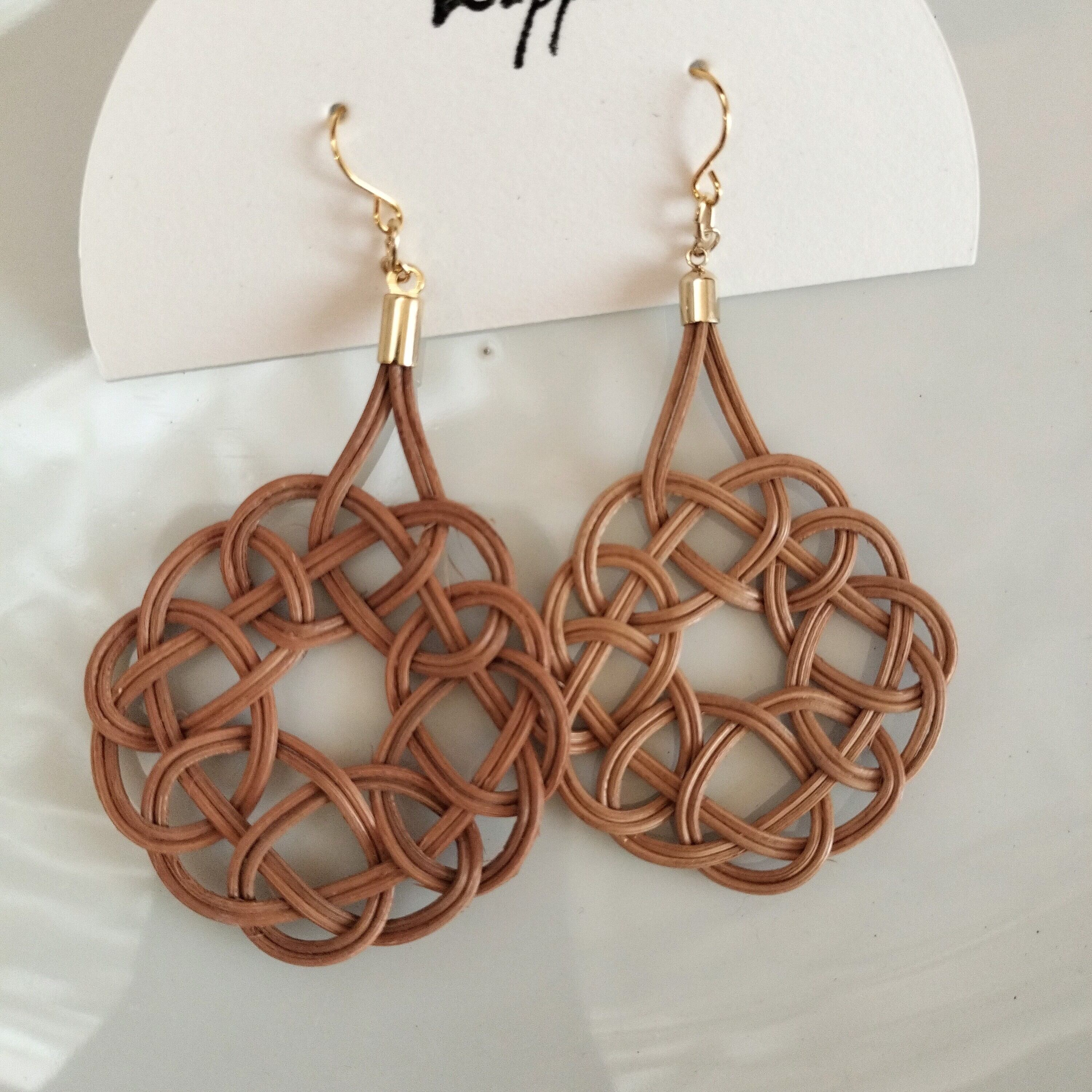 大きめに編まれた存在感たっぷりのアクセサリー。耳元で揺れる雰囲気がとても素敵。そして軽いのです。