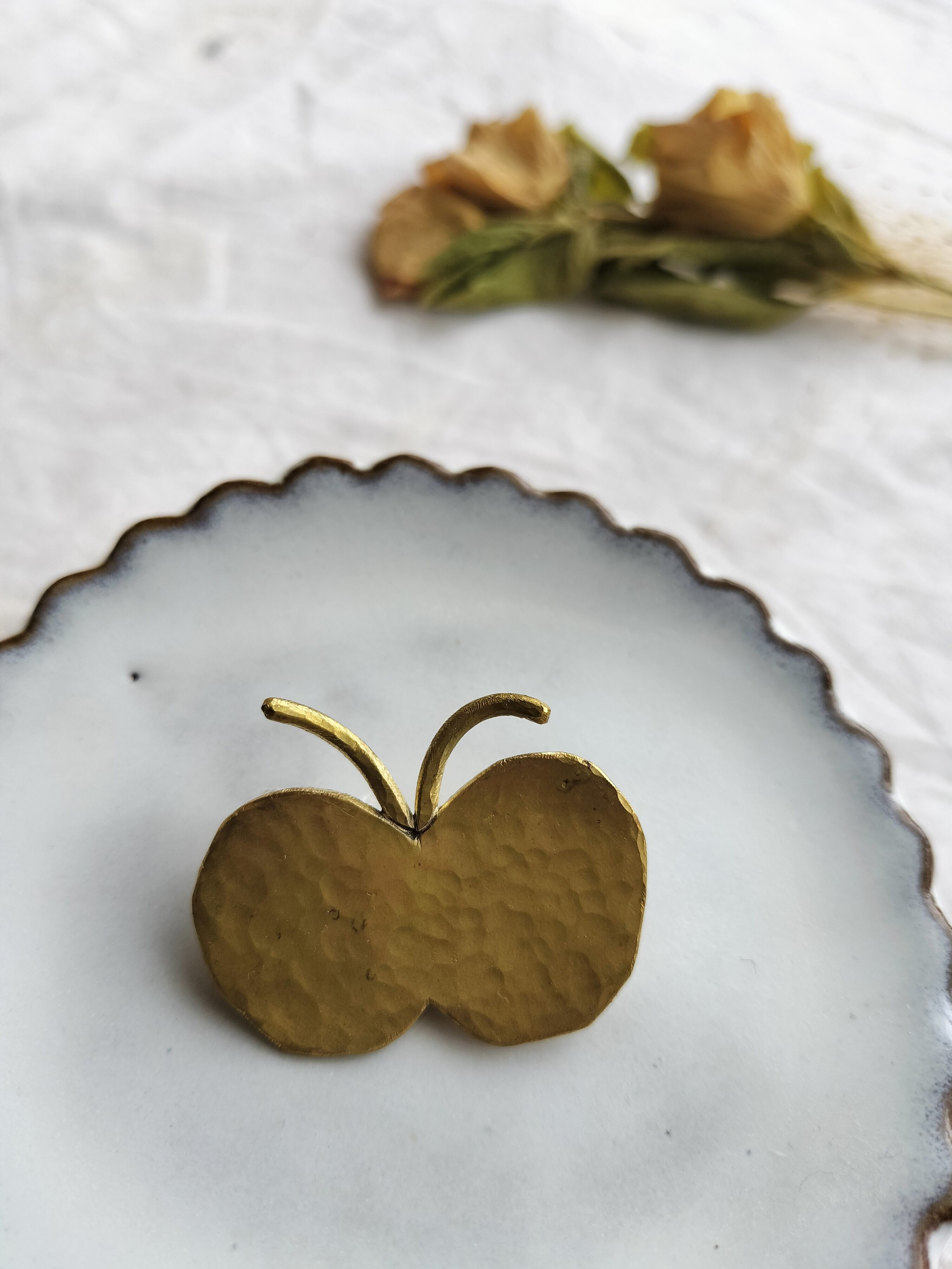ちょっとぽこぽこした断面の蝶々のブローチ。シンプルコーデに真鍮が映えます。