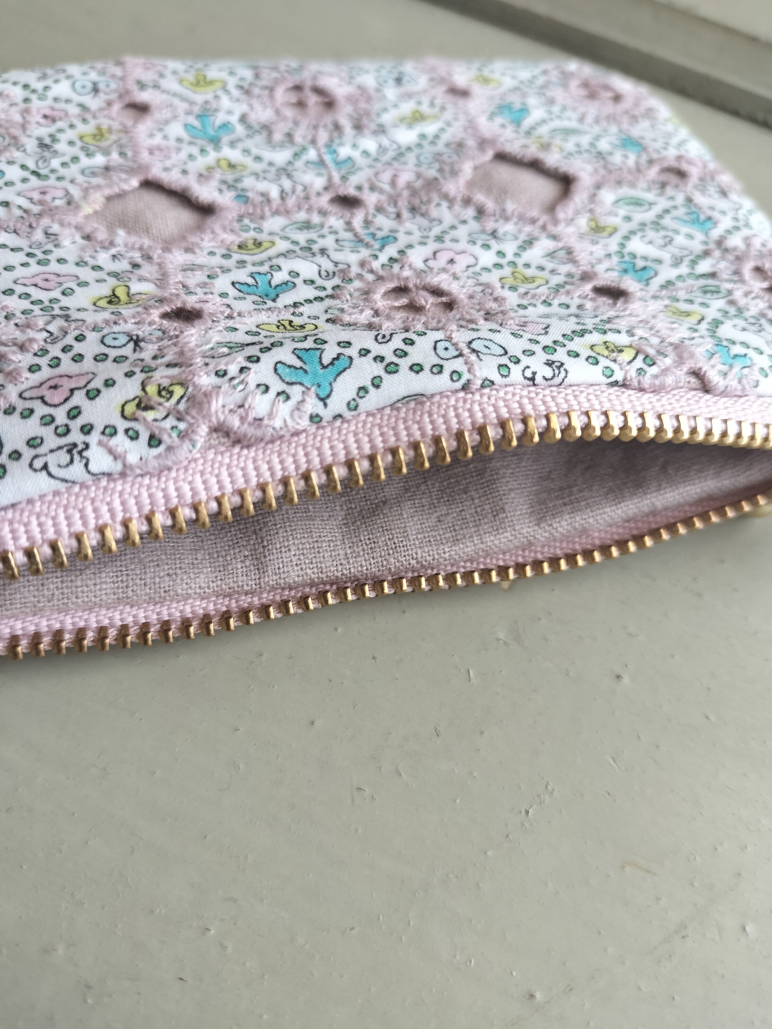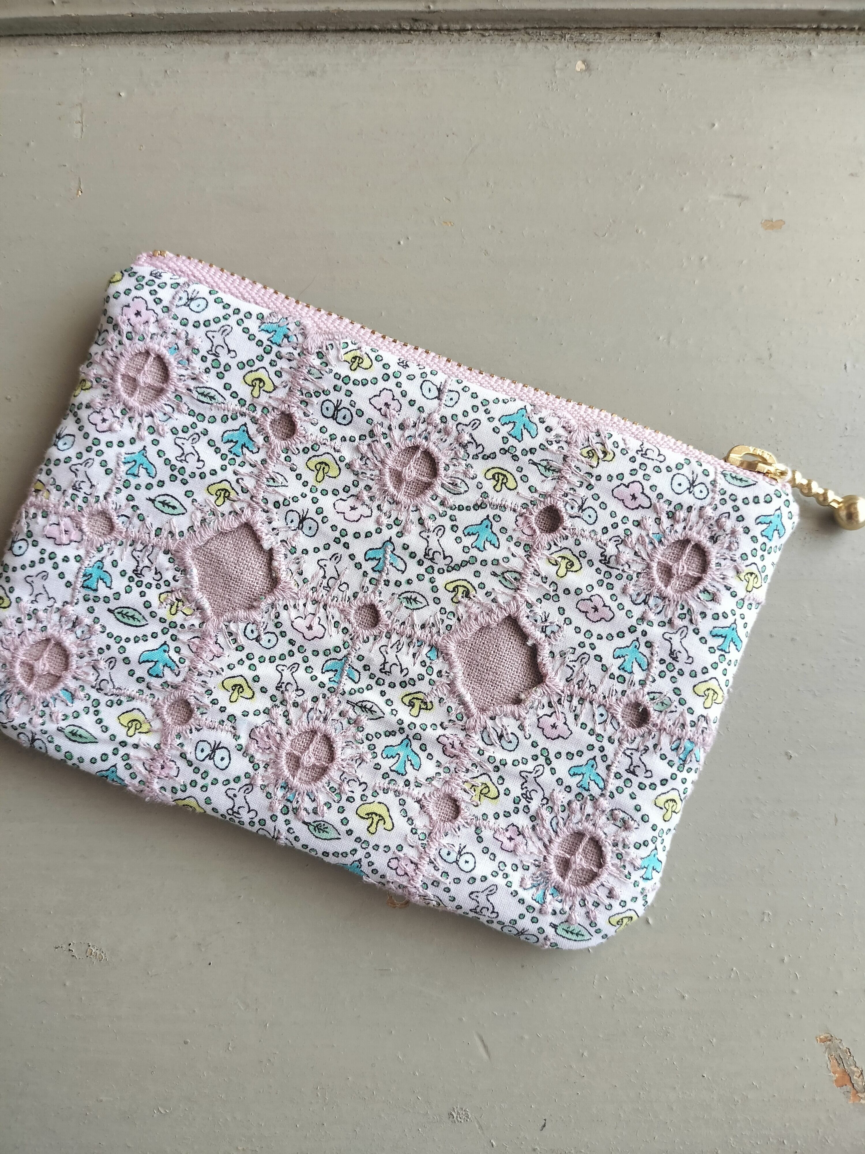 forest wave×anemoneのファブリックを用いた小さめポーチ。
