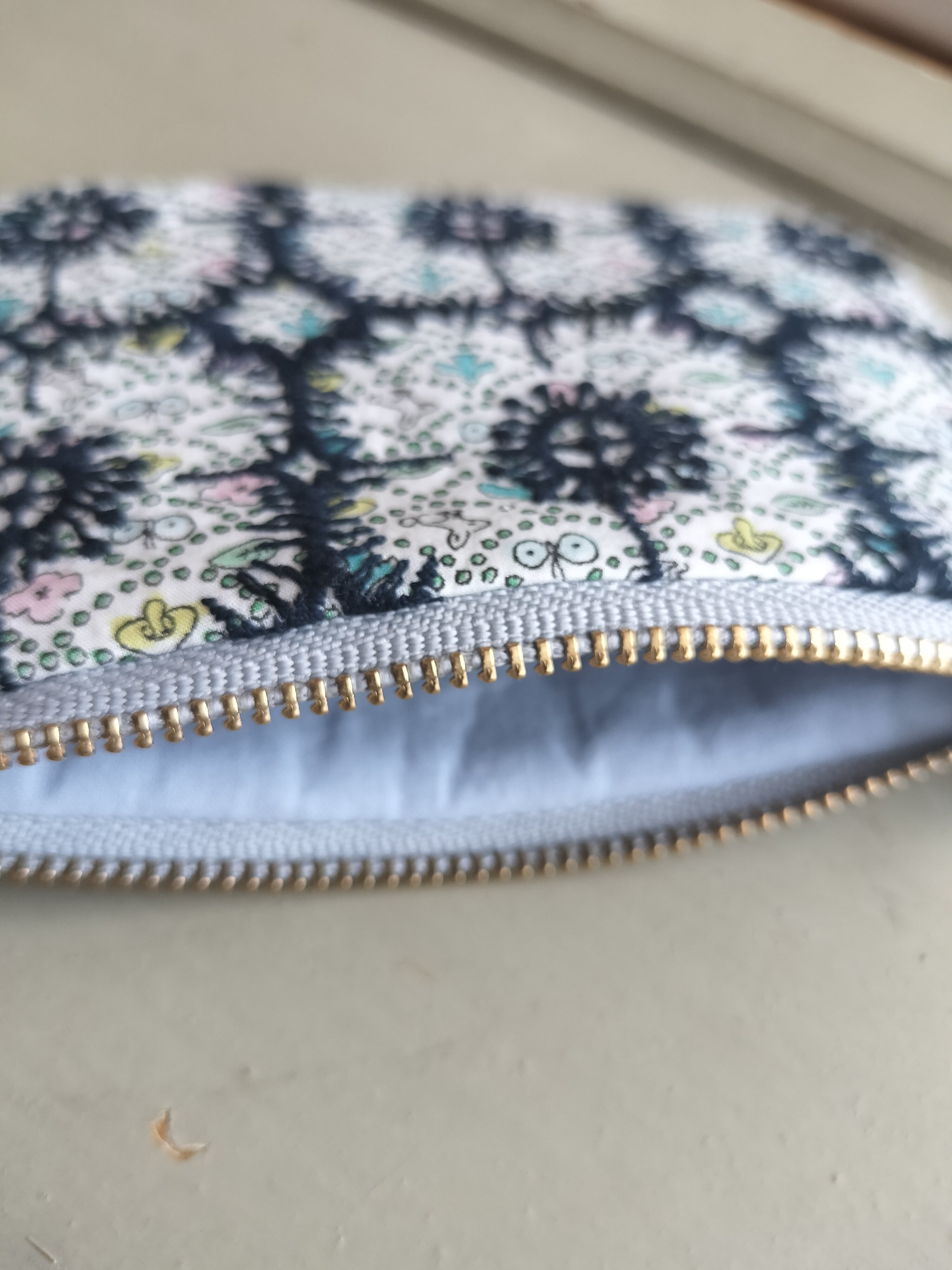 forest wave×anemoneのファブリックを用いた小さめポーチ。